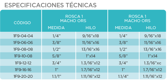 1F9 ADAPTADOR CODO 90° MACHO ORS A MACHO ORS cantidad