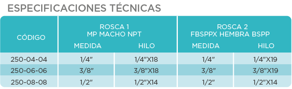 250 ADAPTADOR MACHO NPT – HEMBRA BSPP