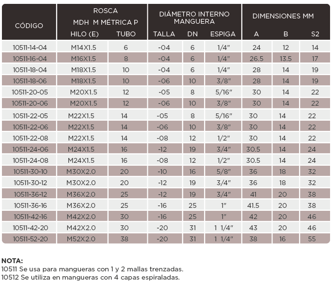 CONEXIÓN 10511 ESP. M. METR. PESADA RECTA PARA MANGUERA R1 – R2 – R12