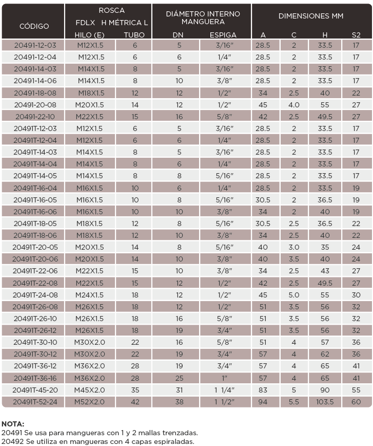 CONEXIÓN 20491T ESP. H. 90° METR. LIVIANA PARA MANGUERA R1 - R2 - R12 cantidad