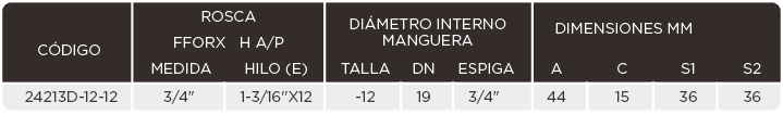 CONEXIÓN 24213D ESPIGA HEMBRA ORFS A/PLANO C/ HEX. INTERLOCK RECTA PARA MANG. R13-R15